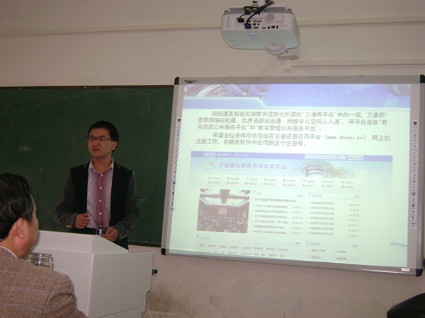 在培训会上,陈晓军老师介绍了“班班通”相关设备的组成以及具体功能,以及畅言交互式多媒体教学软件和白板软件的具体操作流程。在培训结束后,还对教师的疑问一一作了解答。