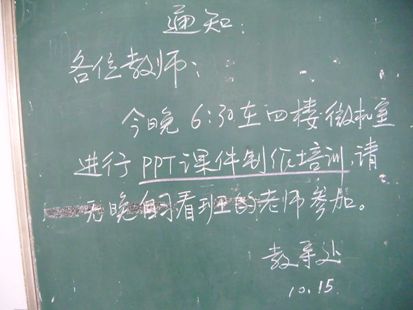 为加快推行教育信息化进程,传授和提高学校教师的多媒体制作技能,晓天中学从10月15日开始,对全校老师进行为期一个月的信息化教学培训。