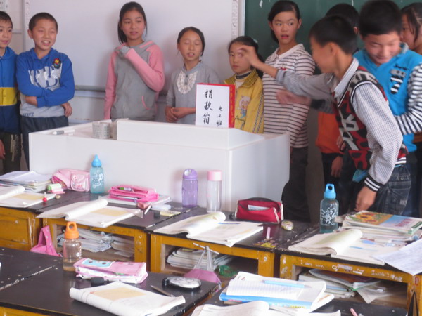 该校七年级同学得知情况后,纷纷商讨希望帮助汪叶霞姐妹俩,在征求班主任老师意见后,他们慷慨解囊,你五元、我十元,纷纷地把自己平时积攒的零花钱投进了捐款箱,只希望通过这种形式给汪叶霞小姊妹俩心灵上一些慰藉。老师们也指出,为汪叶霞捐一些钱物只是权宜之计,希望在以后的学习生活中,多给她一些关心和帮助,让她在高峰中心学校这个大家庭里快乐健康地成长。(汪叶福 特约通讯员:叶德虎)
