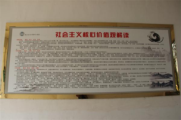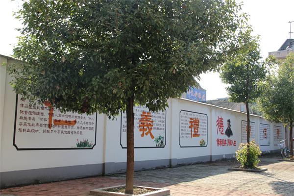 该校精选提炼传统文化精华“仁”“义”“礼”“智”“信”“忠”“勇”“孝”“节”“和”释义注解设立文化墙,要求语文教师结合语文教学让朗读、背诵,教育引导学生感悟传统文化精神内涵,帮助他们消化含义、内化观念、转化行动,把知和行统一起来。同时该校将时代文化精华——社会主义核心价值观:富强、民主、文明、和谐、自由、平等、公正、法治、爱国、敬业、诚信、友善,中国梦•我的梦制作标牌张挂于学校主干道,并搜集整理地方文化——设立道德讲堂:将“龙潭三杰”胡底、三国名将周瑜、龙舒十景---七门堰水利枢纽、羽毛之乡---干镇张挂四壁,引领广大师生热爱学校、热爱老师同学、热爱知识、热爱祖国的情怀,树立正确的世界观、人生观。