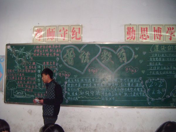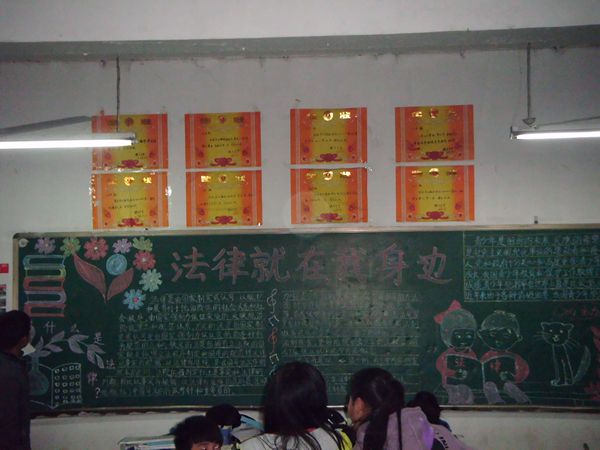 各班级围绕法律名言、交通法规常识、青少年如何学法懂法等发面展开,利用生动的案例,配以鲜明的图画,表达了自己对法律的理解。同时,提醒广大同学知法、守法,从我做起。各班级解说员详细地解说了本班板报设计构思,由校学生会成员组成评审组集体打分,评比结果将择日公布。