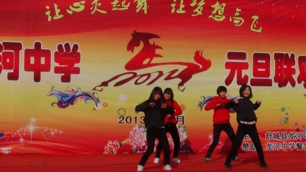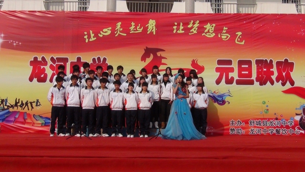 2013年12月30日下午,龙河中学广场上欢歌笑语,掌声雷动。在2014年的钟声即将敲响之际,该校千余名师生欢聚一堂,载歌载舞喜迎新年的到来。