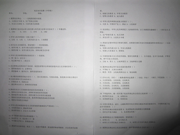 本次竞赛试题是全省统一的《安徽省中小学生宪法知识竞赛》试题,分中学组和小学组,采用答题卡答题,分班收集。通过此次活动,学生系统学习了宪法的条款,大大提高了对宪法的了解,对国家制度、公民政治权利和义务等内容有了初步认识。(特约通讯员:褚书东)