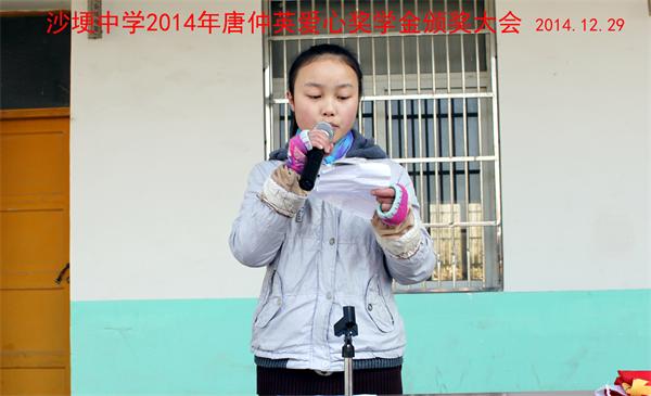 12月29日,南港镇沙埂初级中学隆重举行2014年度唐仲英爱心奖学金颁奖活动。
