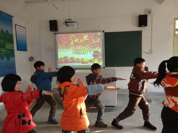 一、二年级学生为了迎新特地把教室装扮一新,并用自己的巧手描绘了一幅幅惟妙惟肖的图画庆祝元旦;三、四年级的学生精心设计了版式美观、内容新颖的黑板报;五、六年级学生除了出一期黑板报迎接新的一年,他们还在班上举办了小型的朗诵比赛庆祝元旦。各班还自编自演了一些文艺节目庆祝元旦,活动中,同学们纷纷献上自己精心编排的表演节目,动听的歌声,优美的舞姿,令人捧腹的小品,充分展现了当代小学生积极向上的蓬勃朝气。