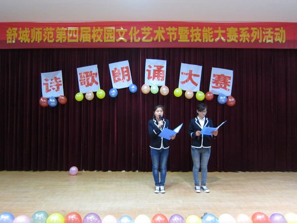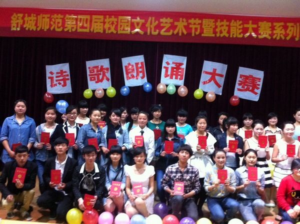 4月8日晚舒城师范学校成功举办了“歌颂祖国,歌唱青春”学生诗歌朗诵决赛。经过初赛、复赛选拔后,一共有20组选手闯入决赛,最终产生一等奖2名,二等奖4名,三等奖6名。