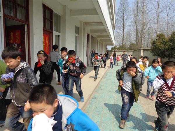 3月31日下午两点二十分,随着一阵急促的钟哨声,正在上课的干汊河镇中心小学五百六十多名师生用手帕捂着口鼻,低身弯腰快速有序地撤离教室,迅速地在操场上指定的地点集合,师生们既紧张又有秩序,整个过程只用了短短的三分钟左右——这是该校精心组织的一场防火逃生演练实况。