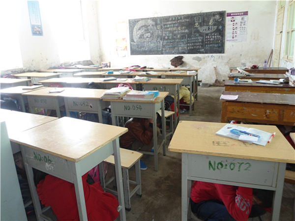 上午9时08分,“为学生健康成长保驾护航”防震减灾综合应急演练活动正式开始。在学校发出紧急疏散指令后,全校教师立即快速组织学生进行避险。学生在教师的指导下,用书包护住头部有序地从教室逃离到操场上。之后又进行了被困时应该如何自救等演练活动。