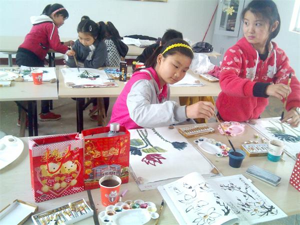 棠树乡少年宫2014年春季开设了国画(花卉)特色班,吸引了一大批小学员。
