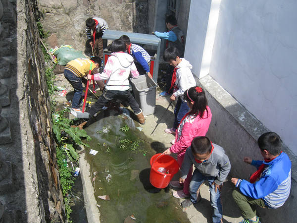 4月2日,各中队立即行动起来,有的中队组织队员用食堂洗菜淘米水来浇灌校园里的小树,有的中队利用午间休息时间除去花坛里的杂草……三(1)中队在中队长的带领下,全体队员集结镇文化站广场,大家分工明确,立即行动,一部分队员不怕脏不怕累,认真清理水沟里的垃圾,另一部分队员走进附近百姓家中,向他们宣传环保知识。他们用自己实际行动践行了环保理念,也受到了群众们的一致好评。