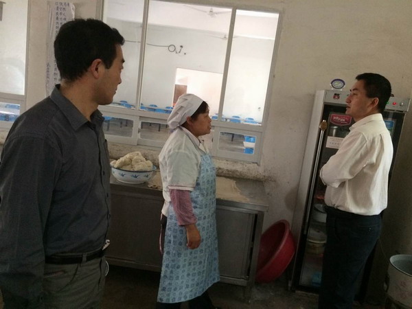 检查组检查该校食堂,确保师生饮食安全