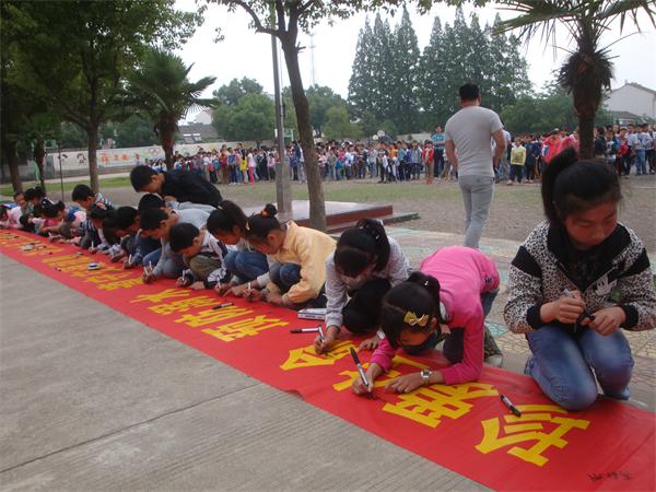 5月19日上午,南港镇明德小学组织全校师生,开展 “珍爱生命、预防溺水、遵守交通规则、讲究食品卫生”的千人签名活动。