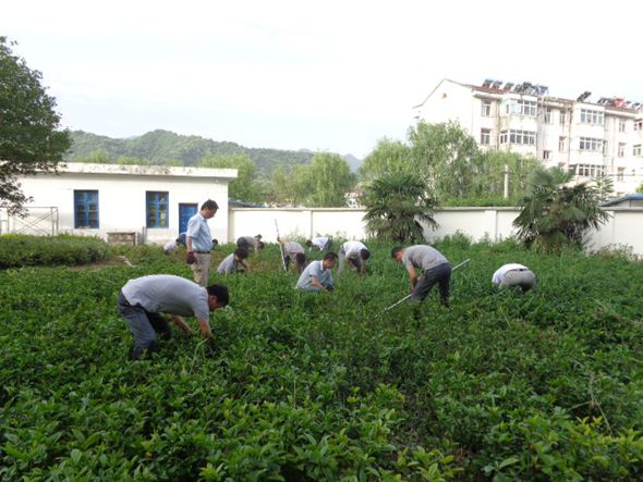 早晨6点30分,党员们来到教学楼前的绿化带,参加义务除草活动。所有党员全部到场,无一请假。有的党员向周围群众借来锄头除草,更多的则是用手拔草。汪恩海校长和舒双武、甘金明两位副校长带头劳动,杨开荣同志是离退休人员,也积极参加到除草活动中来。经过一个早晨的奋战,杂草被清除了,校园环境得到了美化。