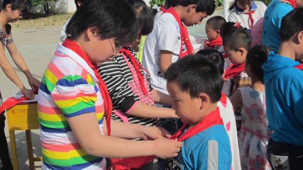 仪式上,辅导员老师简介入队新队员的情况,同时对这些新队员提出要求与殷切的希望。接着由老队员代表为新队员佩戴红领巾。最后新队员在队旗下举行了庄严的宣誓。