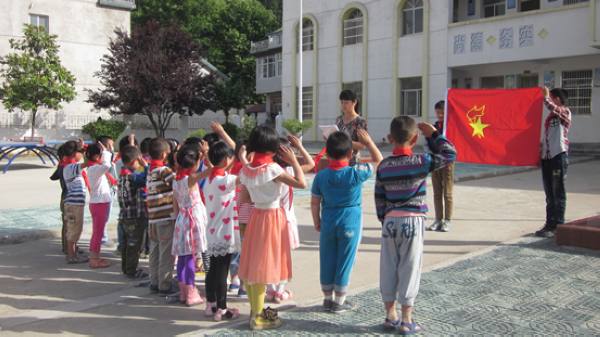 5月30日上午早读课,庐镇乡花园小学少先队辅导员董梅老师组织全校学生参加一年级学生入队仪式。