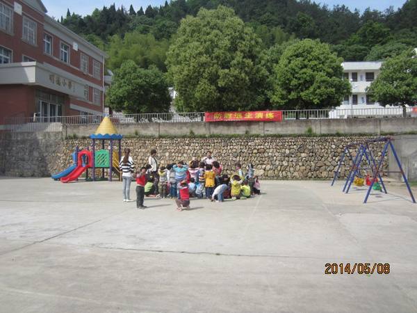 5月8日,庐镇中心幼儿园举行防震逃生疏散演练。