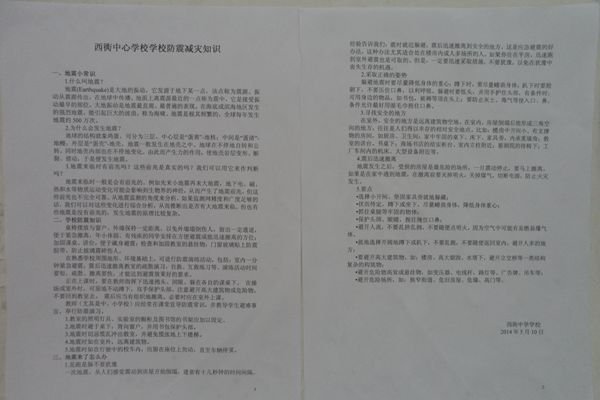 为增强学生的安全责任感,牢固树立安全第一,珍爱生命意识,了解防震知识,掌握一些自救本领,近日,西衖中心学校开展防震安全知识教育活动。