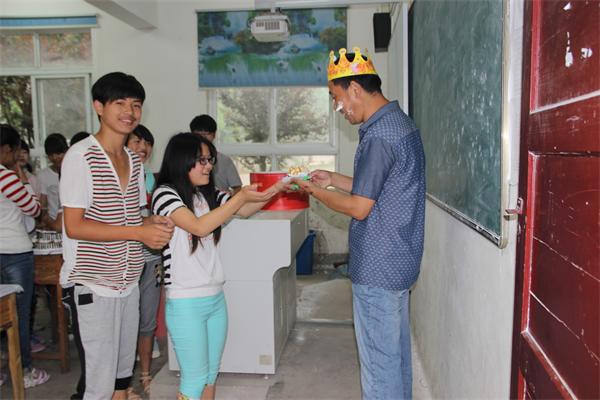 6月16日中午,干汊河中心校2014届九(三)班教室传来“祝你生日快乐-----”,原来全体考生赴考归来一个也没有离开,他们齐聚教室要为亲爱的班主任文建敏老师过生日。