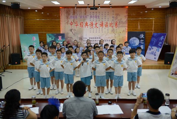 为了更好的推动与传承中华悠久灿烂的文化,激发学生对古诗词的兴趣,展现学生的个性风采和精神面貌,提升学生文化和道德修养。由舒城县教育局主办的“新华杯”中小学生中华经典诗文诵读比赛于6月19日至20日在青少年活动中心举行。