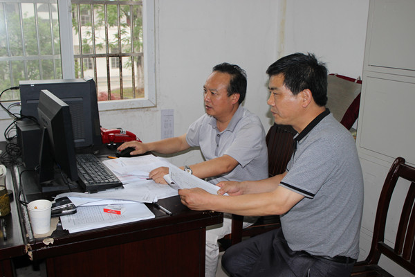 图为该校工作人员细心填报、认真核对数据