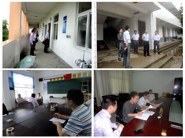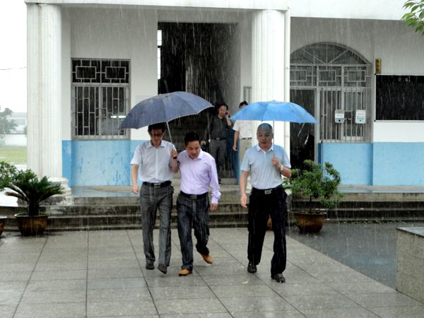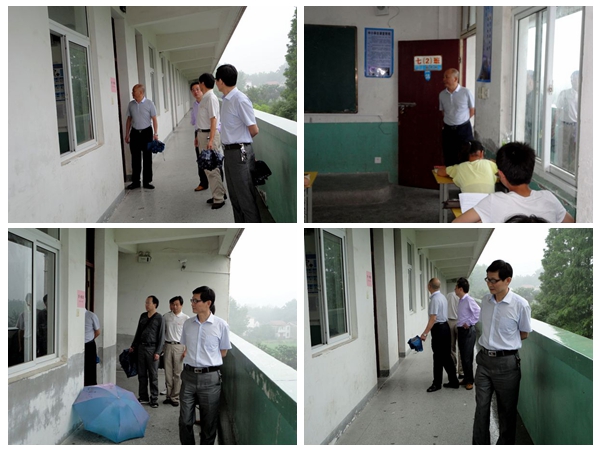6月26日,大雨滂沱,县教育局党组成员、工会主席方志文一行冒雨来到万佛湖中心学校巡视期末质量监测工作。