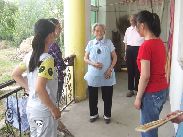另一组女同学在束文娟和余宏清的带领下,一边帮老人打扫卧室、整理床铺,一边与老人聊天、讲学校的故事。朱仕云同学边给老人梳头边与老人拉家长。当老人听说朱仕云的奶奶年龄与自己差不多的时候,老人笑声更加灿烂了,连声说:“现在老年人都享福呀、享福呀!”镇妇联主任陶同萍、团委书记李方东,千人桥镇中心校主任张中宏、团委书记秦福成及其他同行人员也纷纷与老人促膝谈心,询问老人的身体和生活状况。敬老院内欢声笑语、一片和谐。