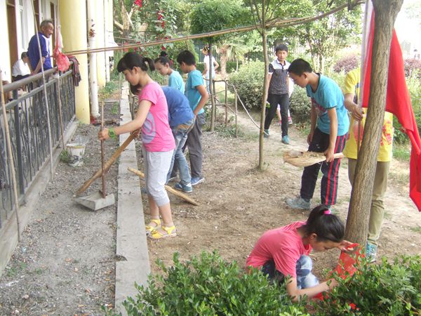 在征得老人们的同意后,孩子们进行分工合作,倪文东、王家伟等男同学打扫卫生,清理花坛上杂草。虽然他们平时是家里的“小太阳”,向来衣来伸手,饭来张口;但做起活来争先恐后,毫不含糊。有的拔草、有的捡垃圾、有的洒水、有的扫地,一会儿功夫就把花坛收拾得井井有条,地面也打扫得干净清爽。有的同学手划破了也没有停下,一直坚持到事情干完。汗水顺着他们的脸颊往下淌,一滴一滴浇灌在花草上。