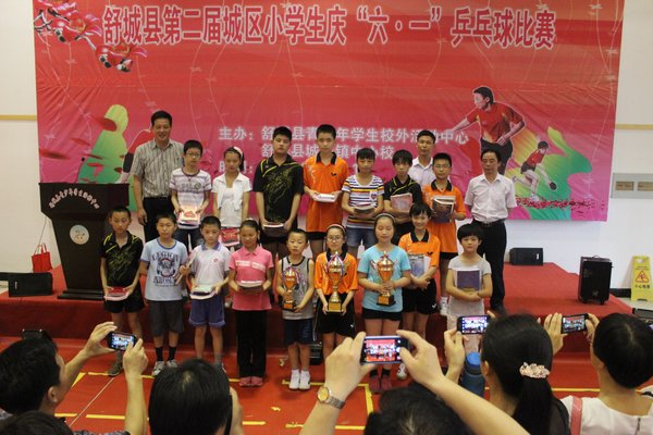 由县青少年学生校外活动中心、城关中心学校联合主办的第二届城区小学生“庆六一”乒乓球赛经过两天百余场次的激烈角逐,于6月1日下午在青少年学生校外活动中心多功能大厅圆满落幕。城关三小、实验小学、城关二小分别获得团体第一、二、三名;城关三小赵昱凡、钱宇澄分别获得男女单打冠军。(张旭)