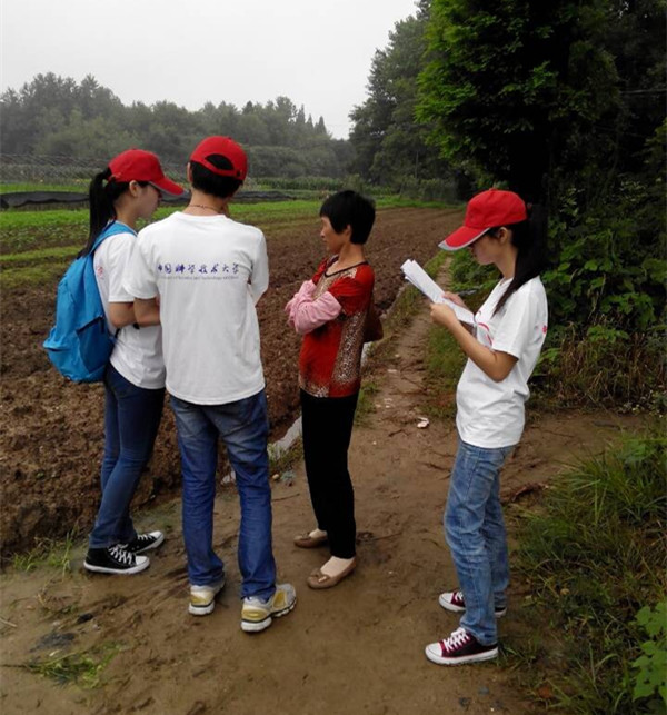 7月6号上午7点,中科大暑期“三下乡”社会实践团在干汊河中学校团委的陪同下由干汊河中学出发到干汊河镇韩湾村进行关于农村信息化建设的调研活动。同学们分成五组分头行动,深入到田间地头和农户家中,积极与各年龄段居民进行交流,了解关于农村信息化建设的事宜,填写调查问卷。