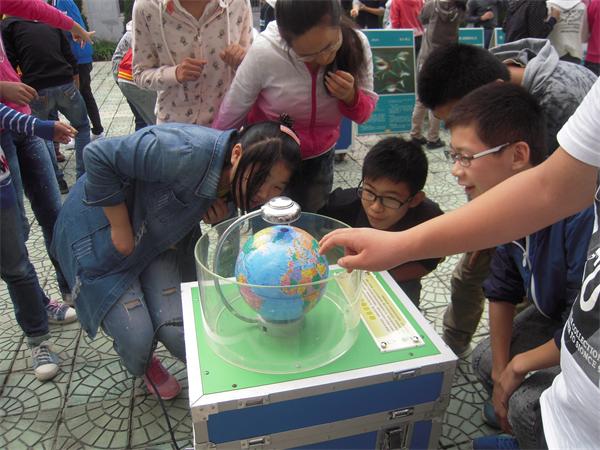 市科协还在校园里展示了倒镜、放大的脸、人体导电、听话的小球、磁悬浮地球仪等科普仪器,海洋生物立体展板,让该校300多名农村孩子们广开眼界,增长知识,拓宽思路,树立科学世界观,提高科学素养。(特约通讯员:程宗听)