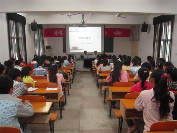 安徽国防科技职业学院张录鹤教授为八年级学生作了一场题为“中学生心理健康”的专场报告会。本次报告会,作为2014年六安市全国科普日的活动之一,是在市科协的支持下举行的。张录鹤教授以其丰富的心理学知识,向同学们详细介绍了心理、生理健康状况及其影响心理状态的一系列科学知识。张教授的讲座获得学生的热烈响应,同学们还与张教授进行了积极的互动。