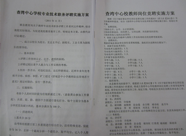 会上,中心校校长洪绍军带领与会人员学习了《查湾中心校教师岗位竞聘实施方案》和《查湾中心校专业技术职务评聘实施方案》。