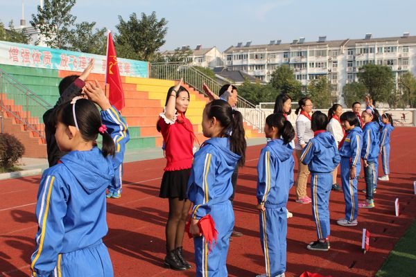为庆祝中国少年先锋队建队66周年,实验小学西校区于10月13日上午举行了“放飞梦想、扬帆远航”新队员入队仪式。