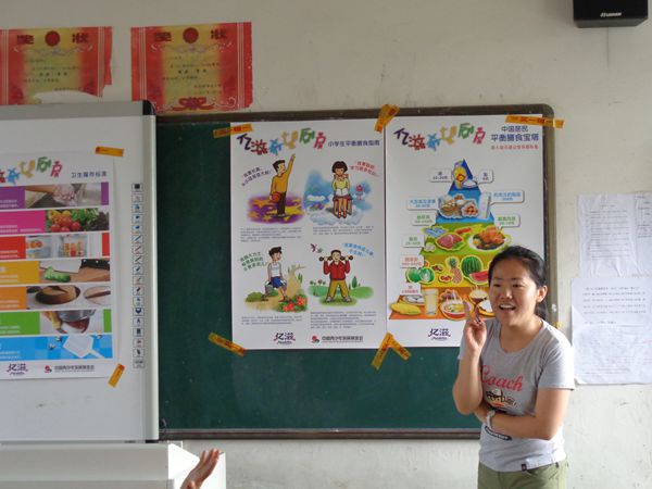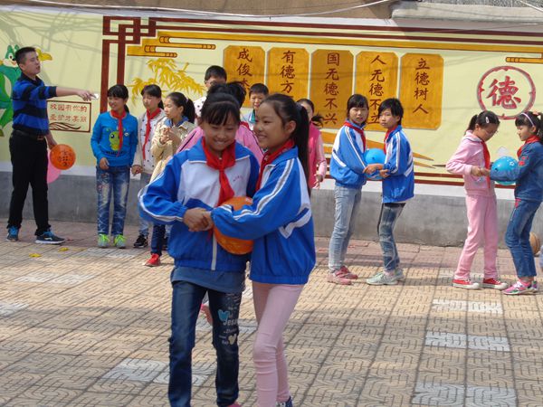 上午10点,二十余名活动志愿者们到校后立即分成两个小组,分别给学生们上营养课和体育课。看,教室里前来授课的志愿者们正在给学生们讲营养知识,孩子们发言多积极啊。瞧,操场上,志愿者们正带着学生们做运气球、袋鼠跳的游戏,学生们玩得多兴奋啊。活动之后,他们还从这些大哥哥大姐姐的手中领取了活动的奖品呢。