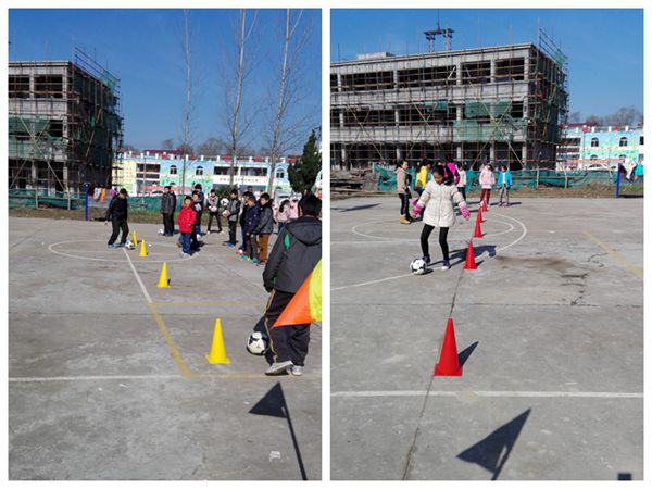 11月27日上午,在阙店中心校体育老师郑先辉的带领下,七年级的孩子们正在进行紧张的足球训练。经过了多次的练习,学生们的足球知识已牢固掌握,技巧也有了很大的进步,初步展现了该校校园足球的实效。