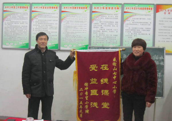 此次谢冲教学点为了表达师生和学生家长浓浓的心声,特制一面“在线课堂,受益匪浅”的锦旗赠给该校,以表示感谢。1月27日上午,教学点负责同志将锦旗送到山七镇中心小学,该校校长欣然地接受了锦旗,同时表示将继续做好“在线课堂”工作,把本校优质教育资源传送给教学点。(谢兴益 特约通讯员:储茂忠)