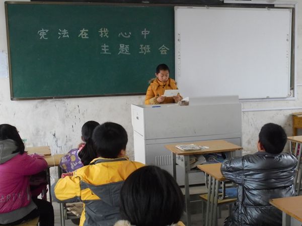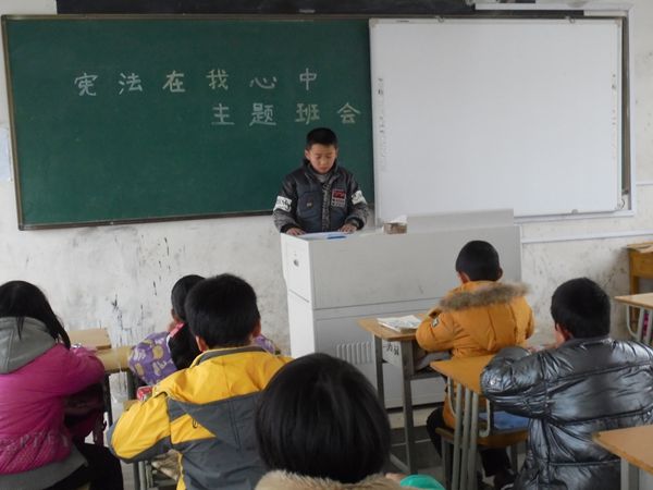 为培养学生的法制观念,引导学生树立“学法、懂法、守法、爱法”的意识,柏林乡柏林小学12月9日开展了“宪法在我心中”主题班会活动。
