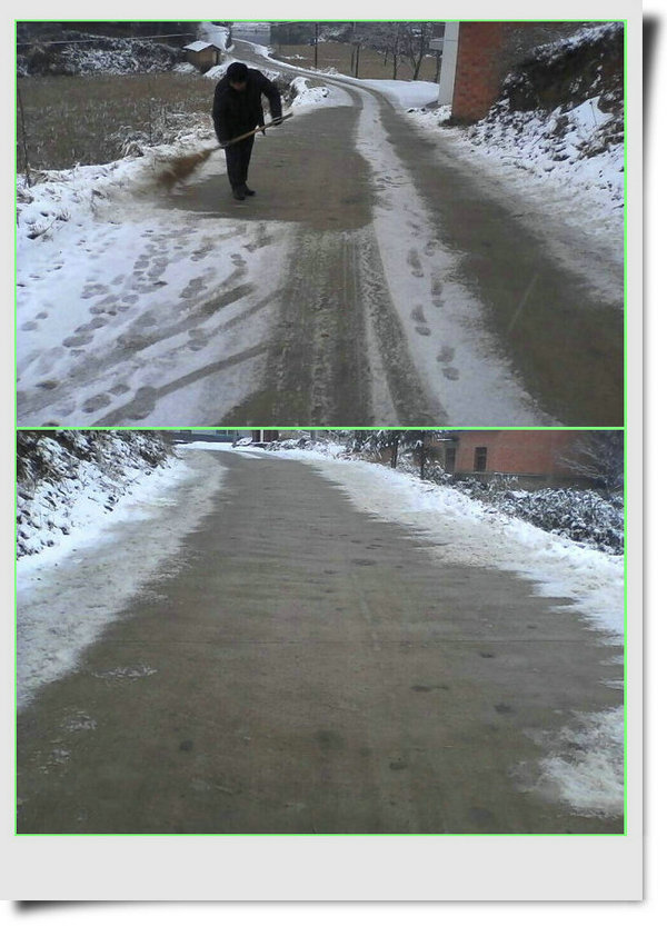 1月28日,这是今年冬天的第一场雪,雪下得很美,但山区学校道路坡度大,给学生出行带来不便。为了让学生安全出行,山七镇牌坊小学校长早早来到学校,冒雪率先将学校门前陡坡上的积雪扫干净,老师们也不甘落后,人人拿起扫帚及时清理校园内外所有道路上的积雪。看着积雪一点点被清理掉,孩子们高兴极了,老师们也安心多了。一切为了孩子,为了孩子的一切,在关注美丽雪景的同时,更应该关注学生的安全。
