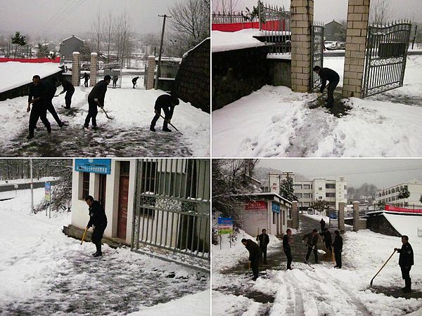 为此,1月30日上午,山七中心校的教职工积极行动起来,铲除校园内的积雪。由于工具有限,大家轮番上阵,有的用铁锹铲,有的用扫把扫,还有的将锄头也带来助阵了。大家齐心协力,两个多小时后,校园内的主要道路及其他重点场所的积雪基本清除干净。看到自己的劳动成果,想到可以为广大师生提供便利,大家都乐开了怀。(傅必虎 特约通讯员:储茂忠)