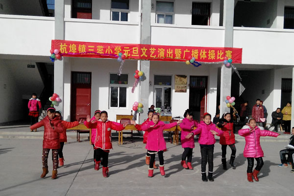 2014年12月31日下午,杭埠镇三蕊小学校园内歌声飞扬,欢声笑语。该校正在举办一年一度的庆元旦文艺汇演暨广播操比赛,全校师生和家长欢聚一堂。