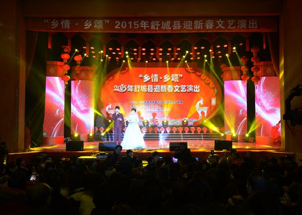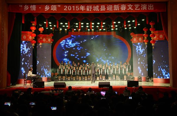 2月11日下午,2015年舒城县迎新春文艺演出在县剧场隆重举行。此次文艺晚会以“乡情,乡颂”为主题,由中共舒城县委宣传部,舒城县文广新局主办舒城县文化馆承办。实验小学星光合唱团应邀参加了此次演出。