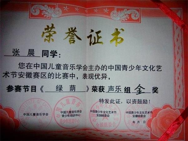 2月8日,中国少年儿童艺术节安徽赛区声乐组决赛在安徽黄梅戏剧院举行。比赛中,干汊河中心小学张晨同学一曲《绿荫》唱出了美好的生活,展现了农村儿童的风采,她纯真甜美的歌喉征服了在座的评委和观众,获得金奖。
