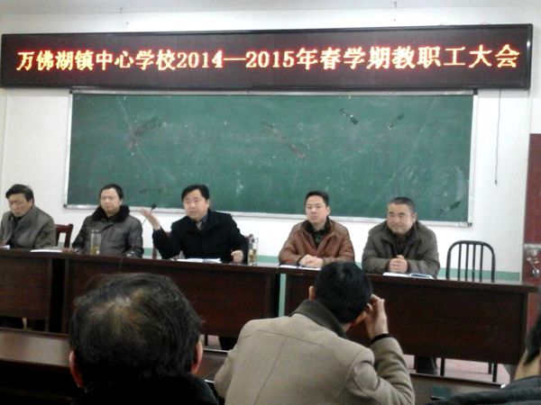 3月9日下午,万佛湖镇中心学校在多功能教室召开新学期工作会议,全面部署新学期教育教学工作,全体教职工按时参加了会议。会议由副校长汪家根主持。