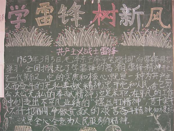 三月初各班结合实际制定了学雷锋月活动方案,营造浓厚的学雷锋氛围,掀起学雷锋的热潮。校团委通过国旗下讲话、制作手抄报、召开主题班会、组织卫生大扫除、唐仲英爱心小分队成员与学困生结对子等形式多样的活动,引领学生走近雷锋,争做新时期的“活雷锋”。