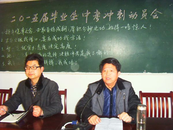 大会由该校教导主任主持。首先由班主任代表就本届学生现状和如何考取理想高中作讲话;接着两名学生代表做经验介绍和表态发言;最后学生集体大声宣读了誓词。