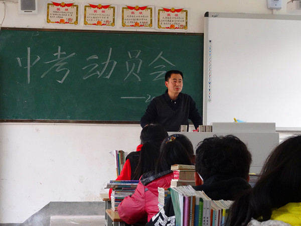 3月16日,查湾中心学校在九年级教室召开中考动员会,该校副校长王士仂和九年级全体同学、老师参加了会议。会议由中心校教务主任褚诗鹏主持。