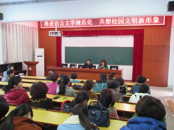 3月23日,舒师附小召开迎接市三类城市语言文字评估工作动员会,推进学校语言文字工作规范化。全体教师参加了会议。