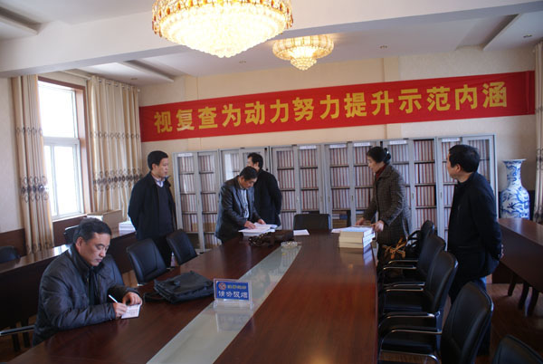3月26日上午,市教育局工会主席程淑玲率考试中心和计财科负责同志在县教育局副局长鲍官平的陪同下,到千人桥中学开展2015年春学期开学重点工作督查。