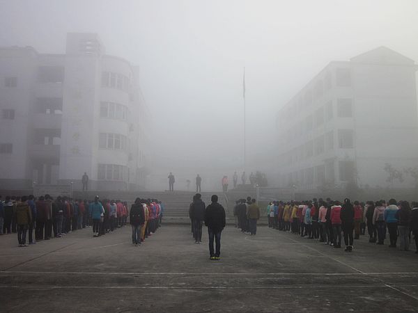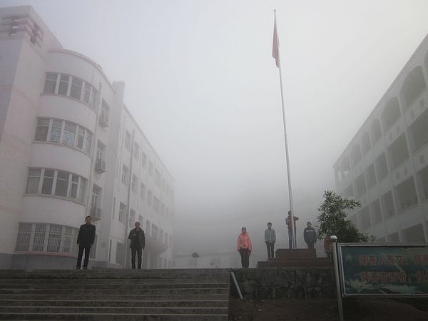 3月9日上午,虽然大雾迷漫,但是山七中心校新学期的第一次升旗仪式如期举行。全体师生立正、肃静,向着缓缓上升的国旗行注目礼,在庄严的仪式中默念着新学期的打算。