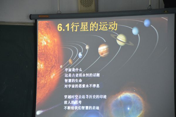 4月14日,晓天中学夏鹏老师的物理公开课在该校多媒体教室进行,本节课的标题是《行星的运动》。